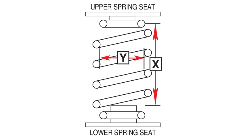 2. Take two measurements. Measure the inside height (X) — the available height within the coil spring. Then measure the inside diameter (Y), or the width available inside the coil from side to side at its widest point. (see diagram)