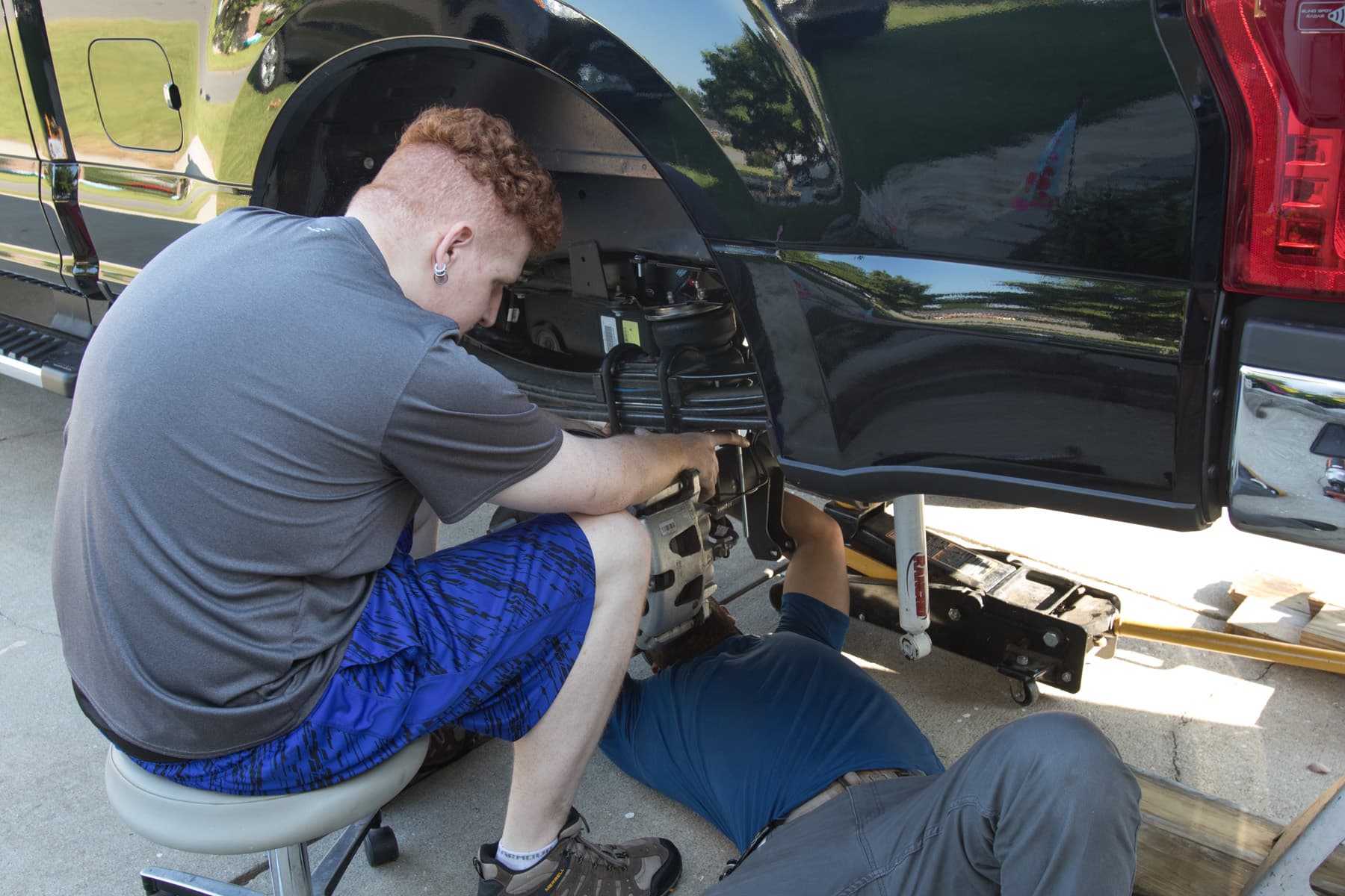 In the fall of 2016, Mark and his wife made the decision to buy their own RV – a 36-foot Forest River toy hauler, weighing in at 10,000 lbs. fully loaded. Knowing what happened with the borrowed pop-up, they knew that they were going to have to find an air suspension solution to make towing easier. At the time, he had a 2016 Ford F-150 Lariat Crew cab, all the truck he could possibly need to get the job done.